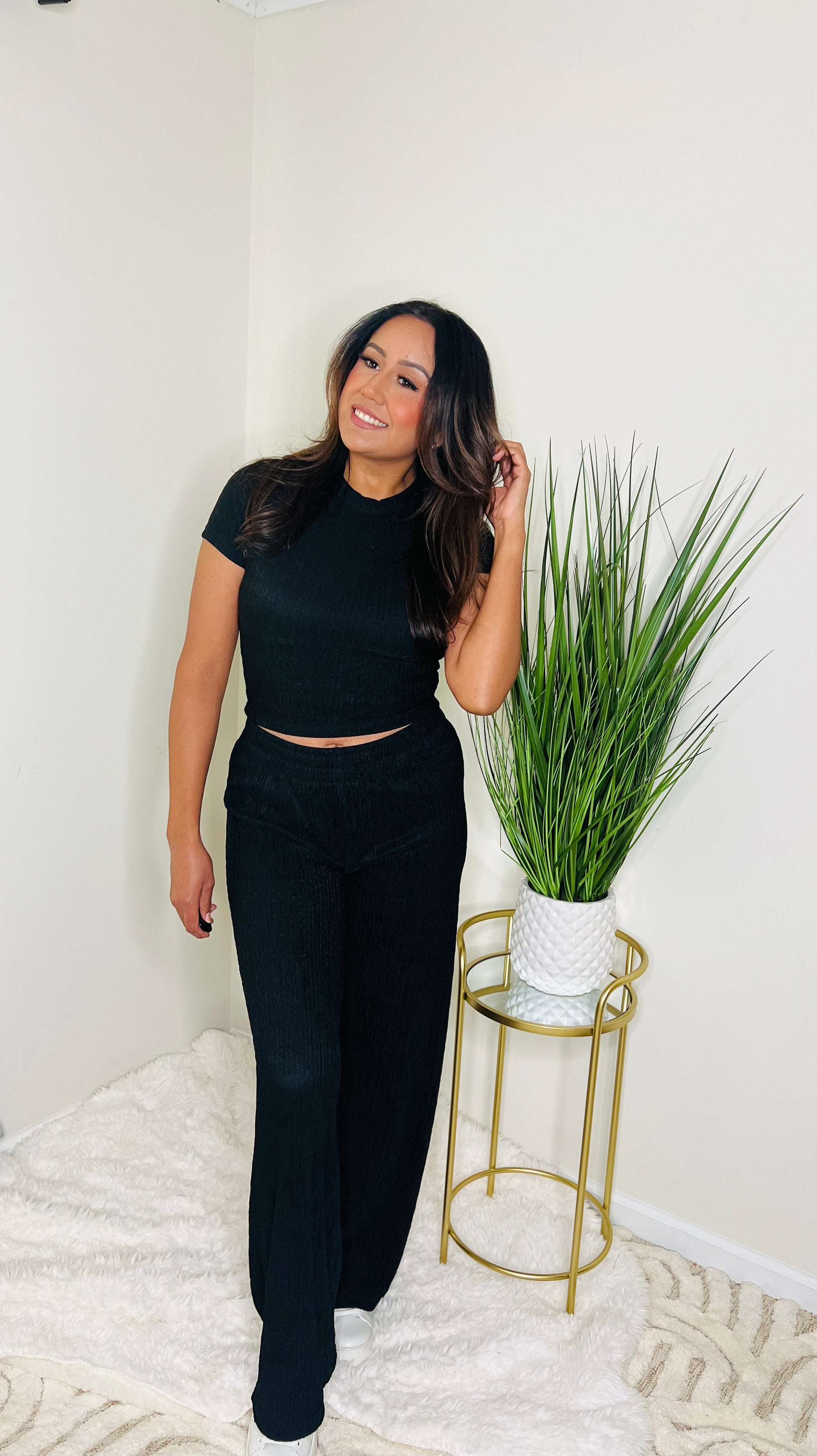 Crinkled plisse short sleeve lounge set