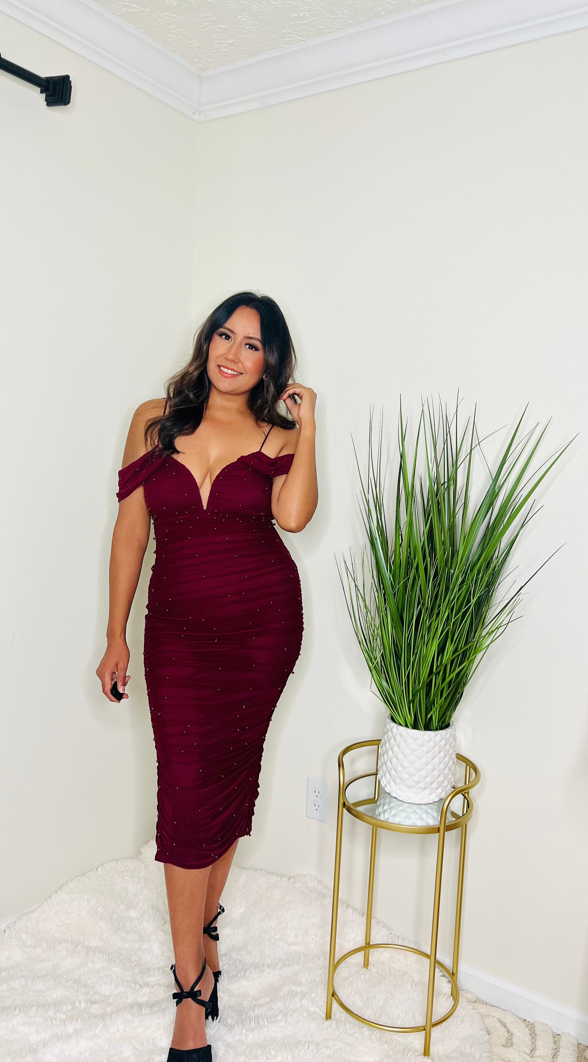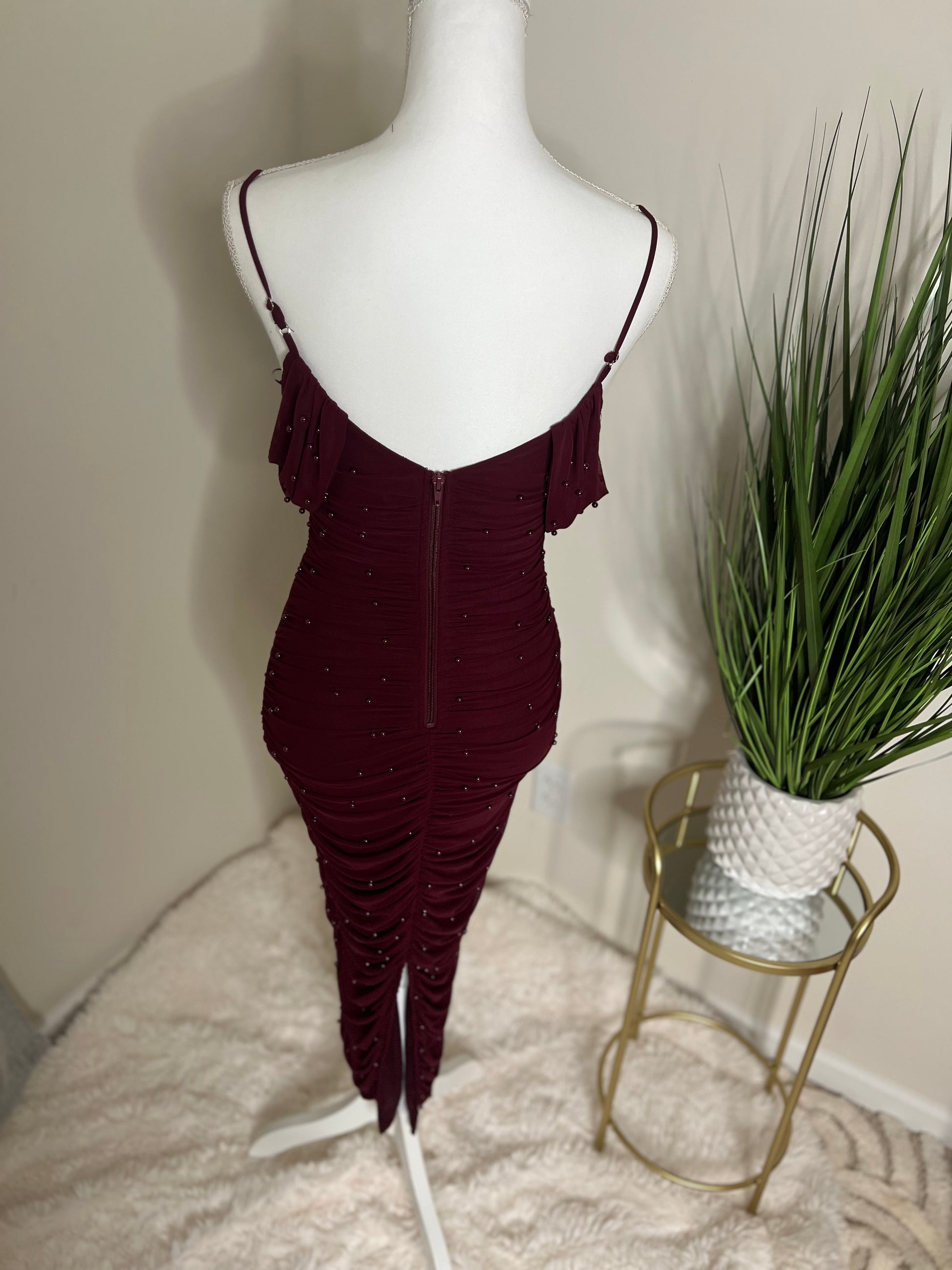 Pearl Ruched Midi Dress